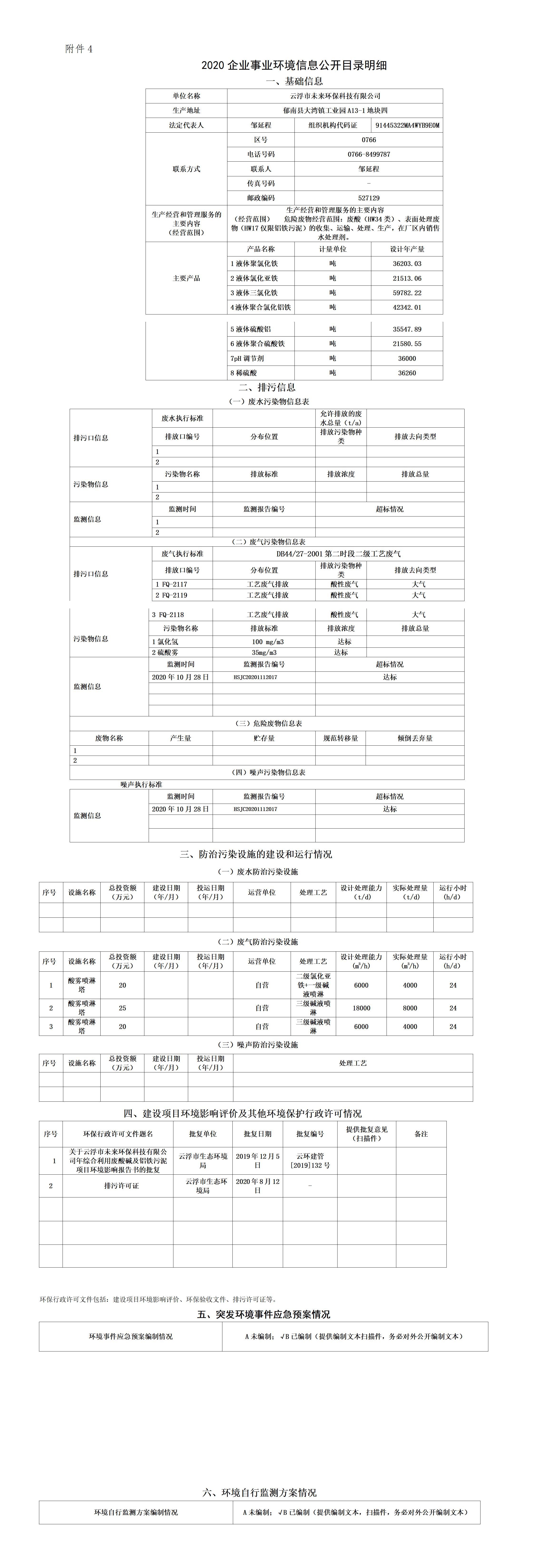 云浮市未来环保科技有限公司环境信息公开目录明细